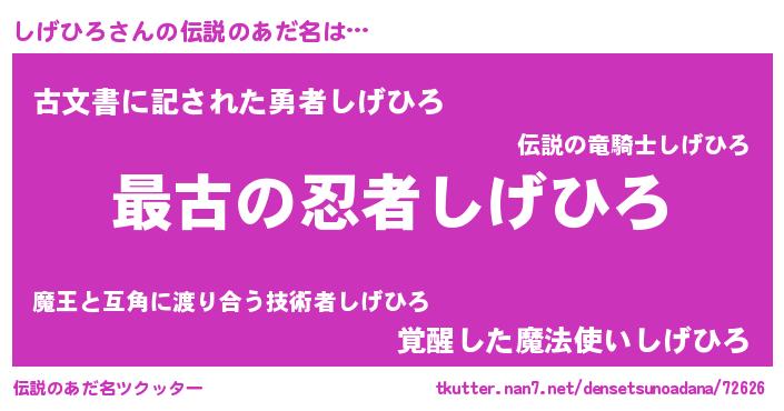 | ヒーロー風カッコイイあだ名 | 『仮面シゲダー』『ウルトラしげひろマン』 |