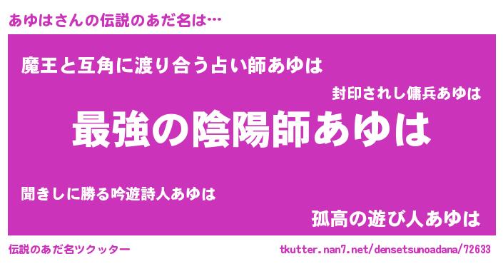 | ヒーロー風カッコイイあだ名 | 『ウルトラあゆはマン』『愛の使者あゆは』 |
