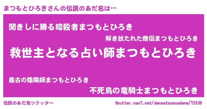 | 男性向けラノベタイトル風あだ名 | 『ノーゲーム・ノーマツモトヒロキ』 |