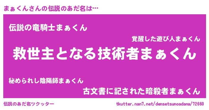 | ヒーロー風カッコイイあだ名 | 『究極戦士マァクン』『スーパーマァクン』 |