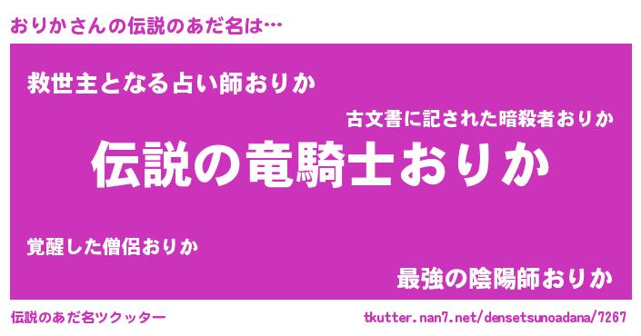 | ヒーロー風カッコイイあだ名 | 『仮面オリダー』『スーパーオリカ』 |