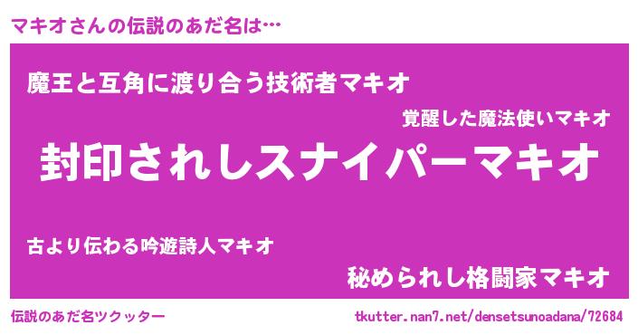 | ヒーロー風カッコイイあだ名 | 『仮面マキダー』『最強戦士マキオ』 |