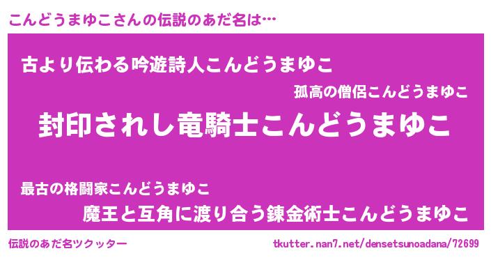 | 男性向けラノベタイトル風あだ名 | 『こんどうまゆこに滅ぼされるだけの簡単なお仕事です』 |