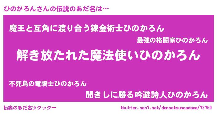 | 意味不明あだ名 | 『住所不定無職ひのかろん(10歳)』 |