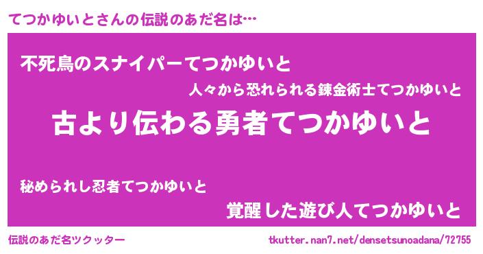 | 胡散臭い通販商品みたいなあだ名 | 『来世でも幸せになれる水素水…その名も「てつかゆいと」』 |