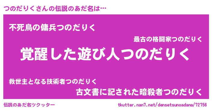 | 女子向けラノベタイトル風あだ名 | 『つのだりくの玉の輿計画!』 |
