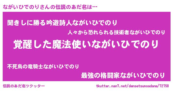 | ヒーロー風カッコイイあだ名 | 『天弓騎士ナガ』『ネオナガイヒデノリ』 |