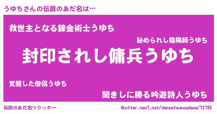 | 意味不明あだ名 | 『ペロリンうゆち』『永久保存うゆち』 |