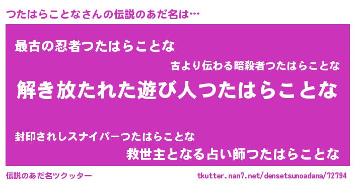 | ポケモン風あだ名 | 『ヒツタハラコトナ』『ツタハダネ』 |