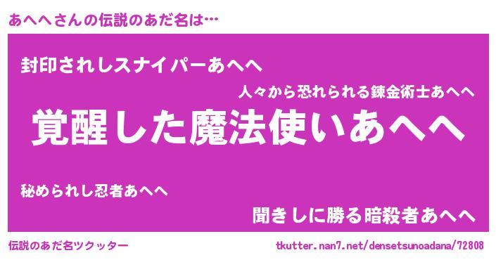 | 意味不明あだ名 | 『自称あへへ』『めかぶ科あへへ属』 |