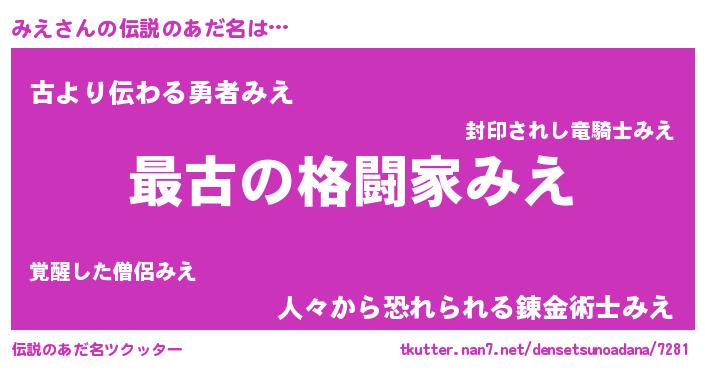 | ファンタジー風あだ名 | 『ユリミエヴァット』『エターナルミエー』 |