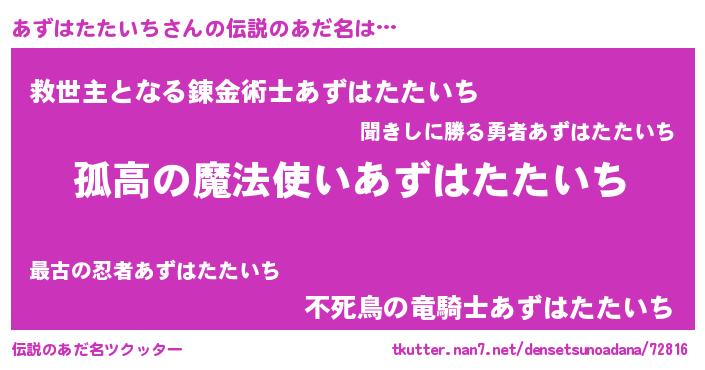 | 胡散臭い通販商品みたいなあだ名 | 『信頼と実績のサプリメント…その名も「あずはたたいち」』 |