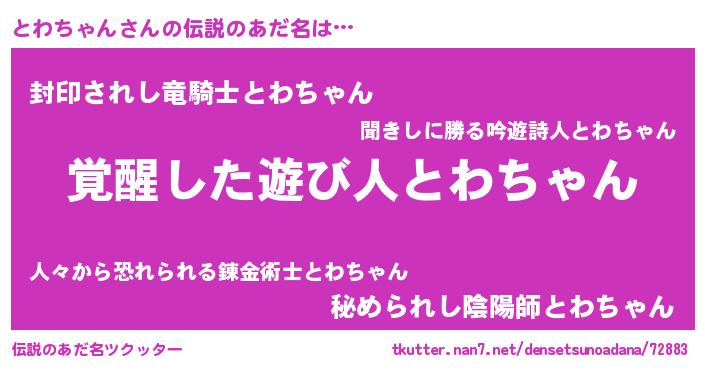 | ヘコむあだ名 | 『とわっぺ』『とわにゅー』 |