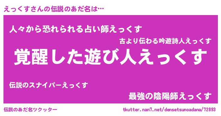 | 意味不明あだ名 | 『自称えっくす』『えっくすフォーエバー』 |