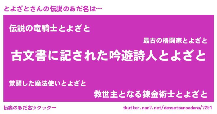 | 意味不明あだ名 | 『永久保存とよざと』『ペロリンとよざと』 |