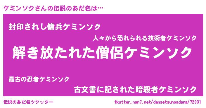 | 欧米人風あだ名 | 『ウサインケミンソク』 |