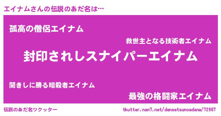 | ヒーロー風カッコイイあだ名 | 『仮面エイダー』『スーパーエイナム』 |