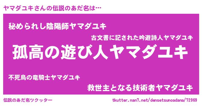 | 男性向けラノベタイトル風あだ名 | 『ダンジョンにヤマダユキを求めるのは間違っているだろうか』 |