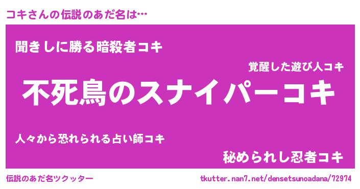 | ファンタジー風あだ名 | 『コキフェル』『ゼコキトゥ』 |