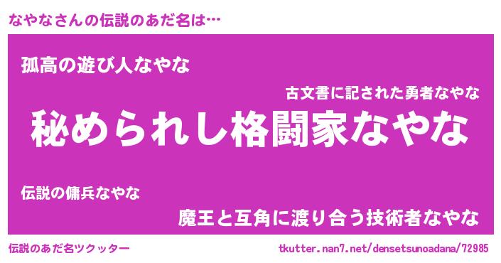 | 男性向けラノベタイトル風あだ名 | 『ナヤナスレイヤー』 |