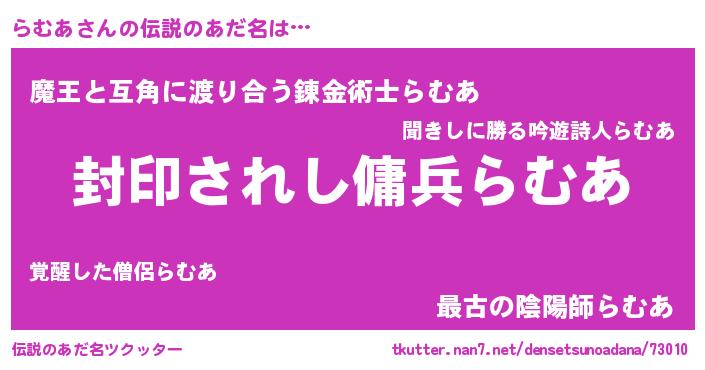 | ヒーロー風カッコイイあだ名 | 『スーパーラムア』『愛の使者らむあ』 |