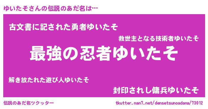 | ファンタジー風あだ名 | 『エターナルユイタソー』『ゼユイトゥ』 |