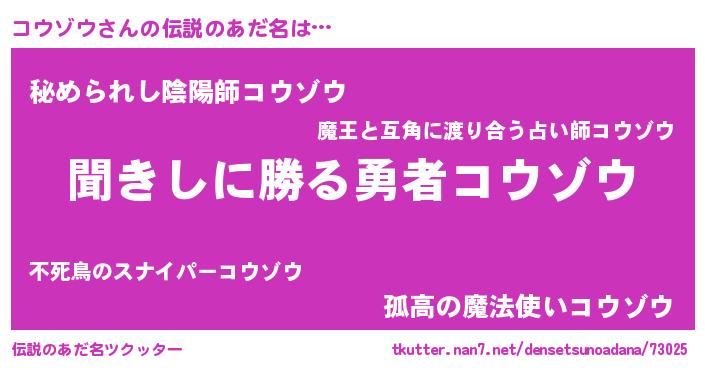 | 男性向けラノベタイトル風あだ名 | 『緋弾のコウゾウ』『コウゾウスレイヤー』 |