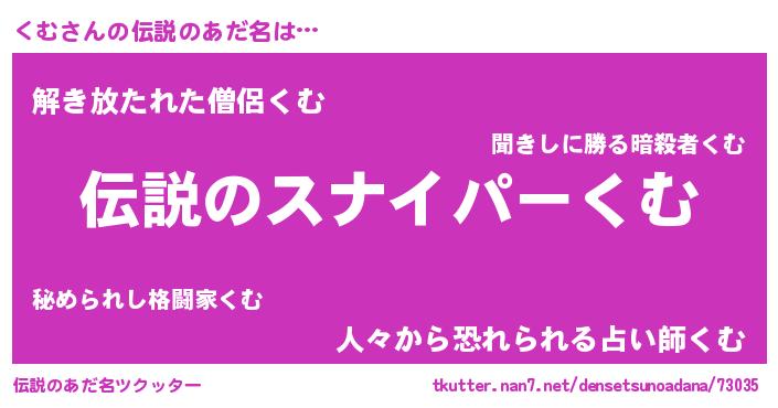 | 胡散臭い通販商品みたいなあだ名 | 『ガンによく効く冬虫夏草…その名も「くむ」』 |