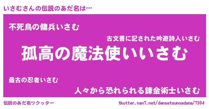 | 胡散臭い通販商品みたいなあだ名 | 『信頼と実績のサプリメント…その名も「いさむ」』 |