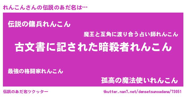 | 意味不明あだ名 | 『永久保存れんこん』『自称れんこん』 |