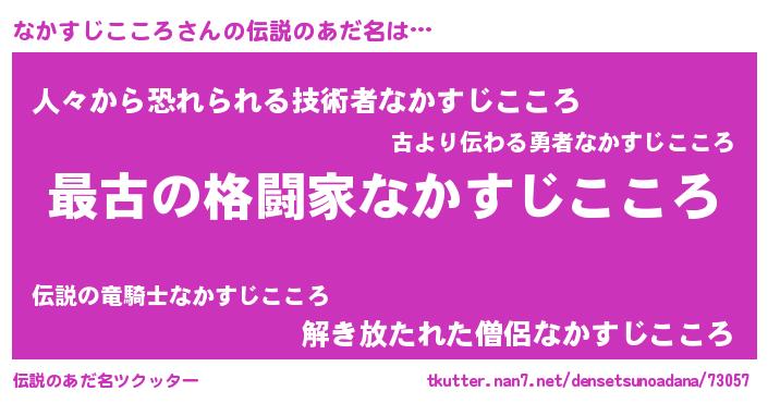 | 男性向けラノベタイトル風あだ名 | 『なかすじこころに滅ぼされるだけの簡単なお仕事です』 |