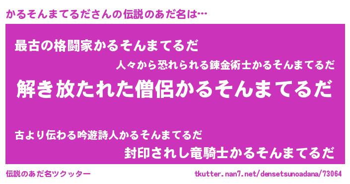 | 男性向けラノベタイトル風あだ名 | 『かるそんまてるだの嫁は女の子じゃないと思った?』 |