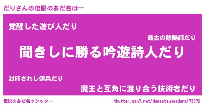 | 自動車の名前っぽいあだ名 | 『デミダ』『ダルトリパン』『ダンR』 |