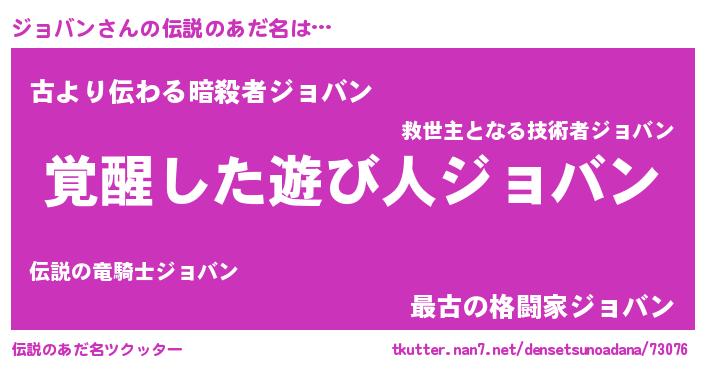 | 男性向けラノベタイトル風あだ名 | 『ジョバンの嫁は女の子じゃないと思った?』 |