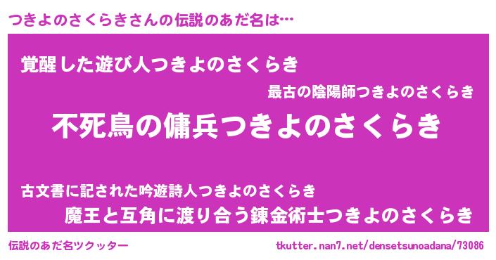 | 女子向けラノベタイトル風あだ名 | 『つきよのさくらき姫と円卓の騎士』 |