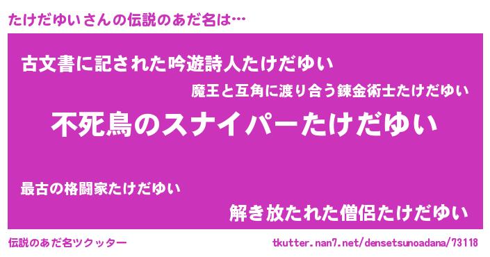 | 胡散臭い通販商品みたいなあだ名 | 『モテモテ間違いなし霊験あらたかなお札…その名も「たけだゆい」』 |