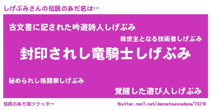 | ファンタジー風あだ名 | 『シゲフェル』『カークシゲラー』 |