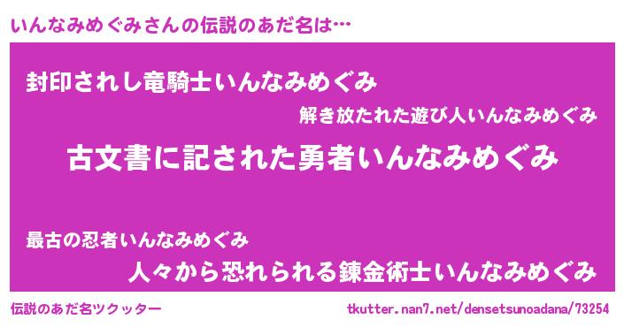 | ヒーロー風カッコイイあだ名 | 『ネオインナミメグミ』『仮面インダー』 |