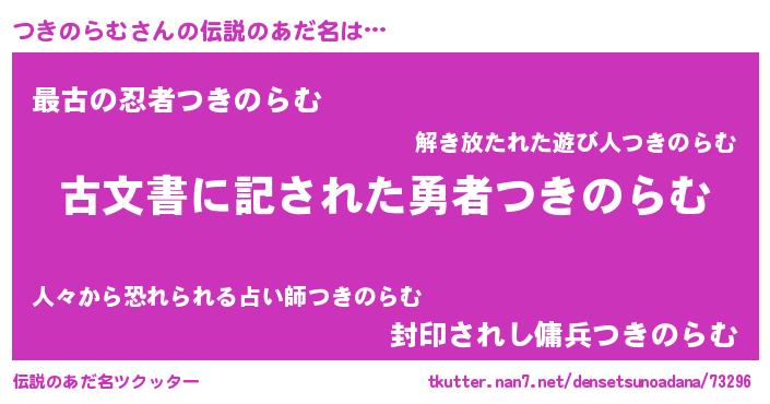 | 意味不明あだ名 | 『永久保存つきのらむ』 |
