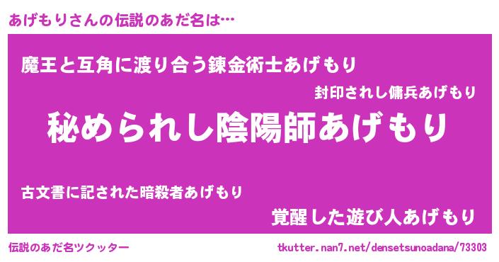 | 男性向けラノベタイトル風あだ名 | 『アゲモリスレイヤー』 |