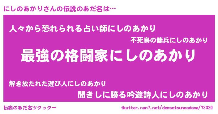 | 胡散臭い通販商品みたいなあだ名 | 『あなたにだけ特別に提供する100年もののヴィンテージワイン…その名も「にしのあかり」』 |