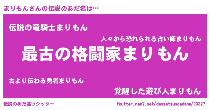 | ヒーロー風カッコイイあだ名 | 『ウルトラまりもんマン』『暗黒騎士マリ』 |