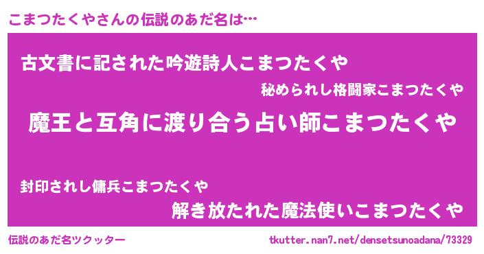| 意味不明あだ名 | 『住所不定無職こまつたくや(40歳)』 |