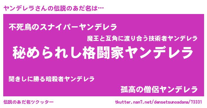 | ファンタジー風あだ名 | 『エターナルヤンデレラー』『ヤンフェル』 |