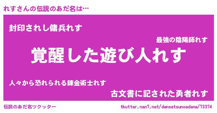 | 女子向けラノベタイトル風あだ名 | 『闇のれす』『れすの卵を拾いまして』 |
