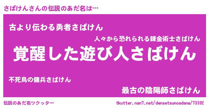 | ヒーロー風カッコイイあだ名 | 『幻影騎士サバ』『ネオサバケン』 |