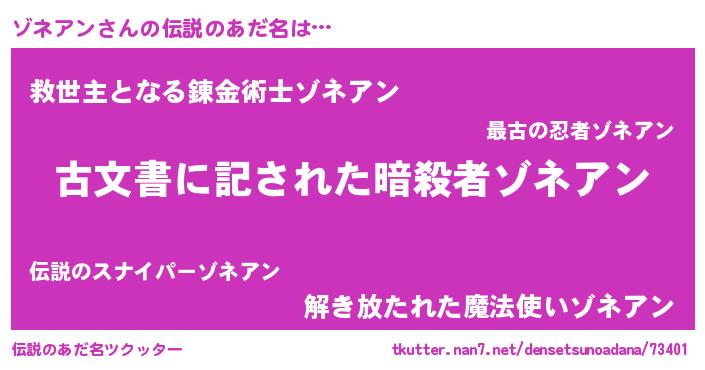 | ポケモン風あだ名 | 『ゼニゾネ』『ゾックウザ』 |