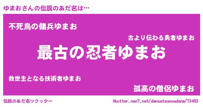 | 男性向けラノベタイトル風あだ名 | 『転生したらゆまおだった件』 |