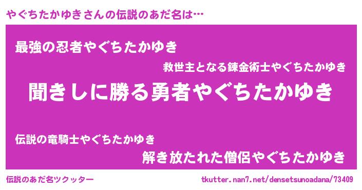 | 肩書あだ名 | 『やぐちたかゆき上級大将』 |