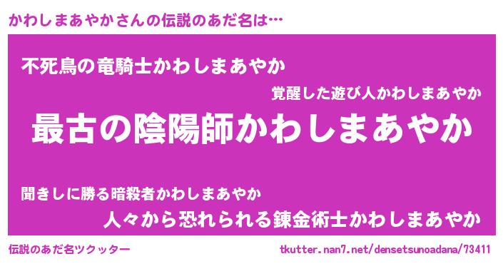 | ファンタジー風あだ名 | 『エターナルカワシマアヤカー』 |